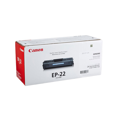 کارتریج تونر رنگ مشکی کانن Canon EP-22 مناسب برای پرینترهای لیزری مدل Canon LBP-1120, LBP-800, LBP-810, LBP-1110, LBP-1110se, LBP-250 ,LBP-350, P420 است و کارکرد این کارتریج لیزری مشکی 2500 برگ نیز است. خشککردن سریع جوهر اصلی کارتریج تونر کانن باعث بـالا رفتن سرعت چاپ میشود و حاصل کار، نقشهایی است که مقاومت بالایی در برابر لکهها دارد.